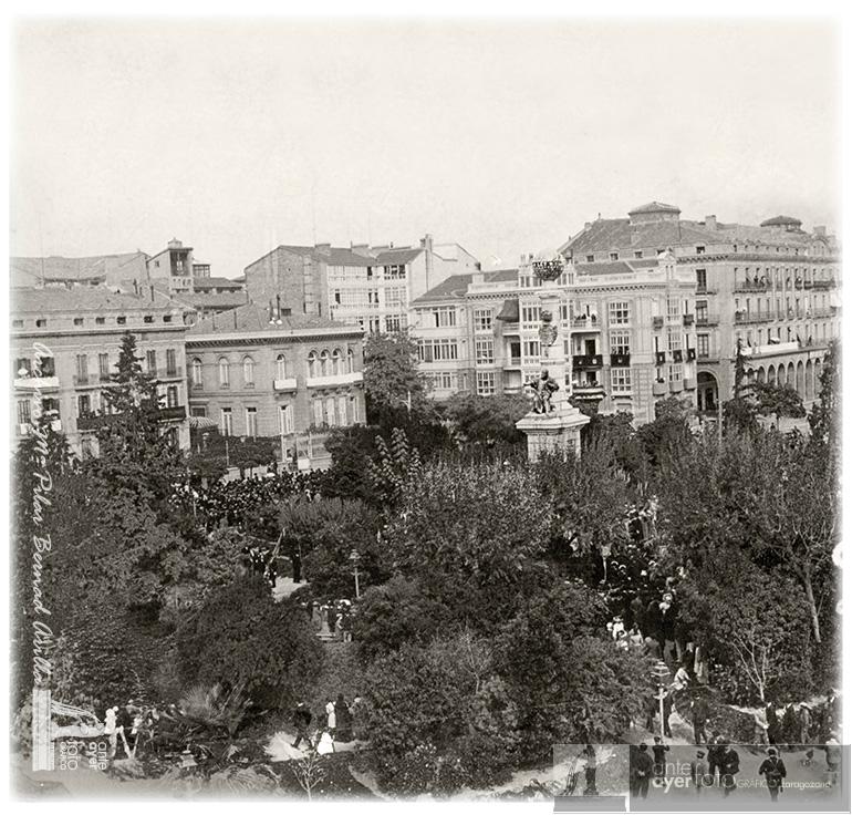 Inauguración del Monumento al Justiciazgo, en una fotografía tomada desde uno de los hotelitos de la plaza de Aragón, el 22 de octubre de 1904.
