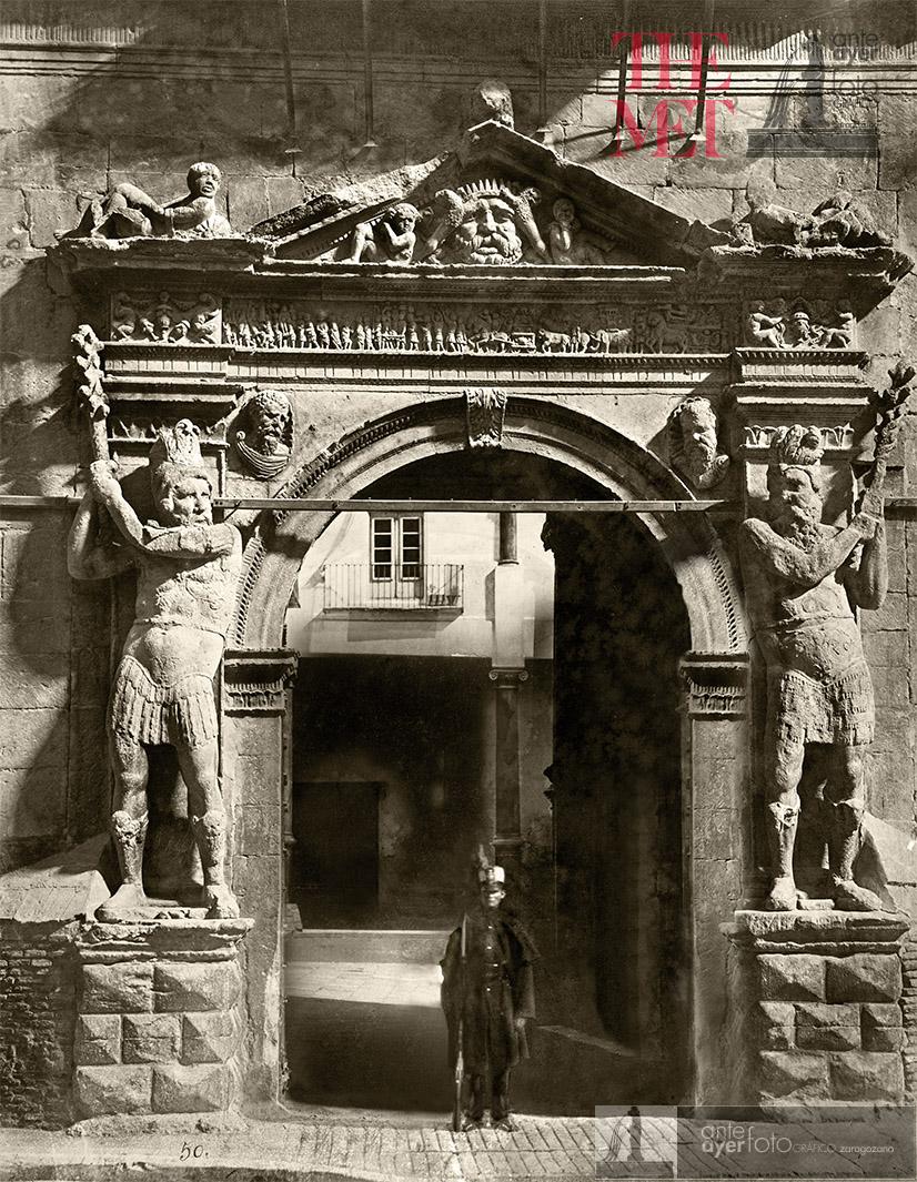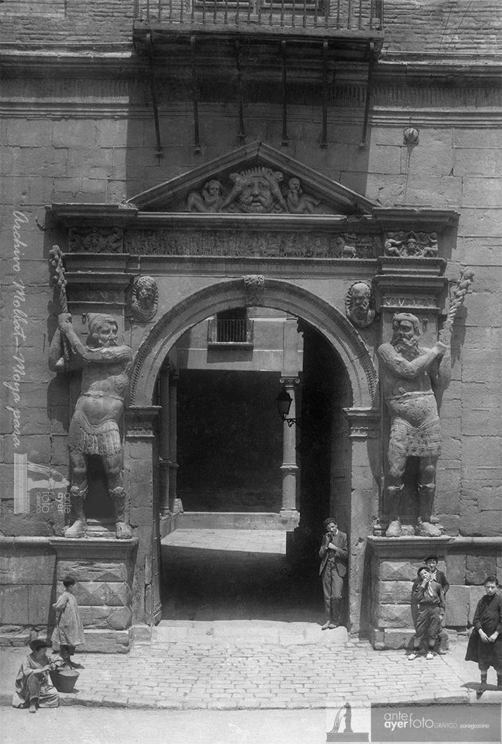 Estamos hablando, claro, de los guardianes que custodian la puerta de uno de los edificios más impresionantes que se conservan en Zaragoza, el que preside el tramo inicial del Coso y que se conoce como Palacio de los condes de Morata, de los Luna, o la Audiencia.