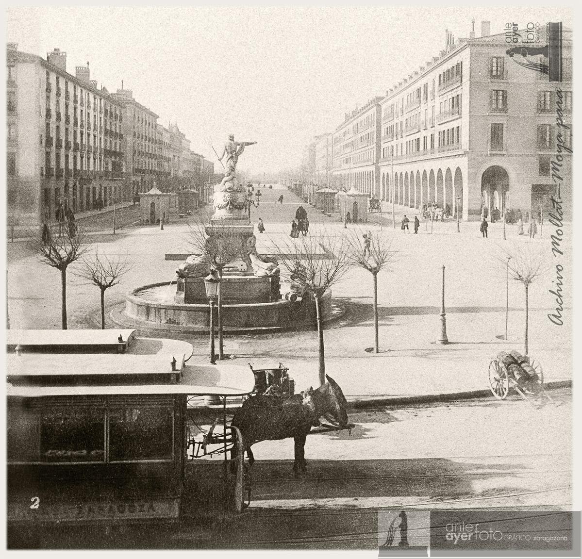 Neptuno coronaba la primera fuente ornamental del siglo XIX que suministraba agua para el consumo de boca que dispuso Zaragoza y no podemos decir que empezara con buen pie. De hecho, ni siquiera estaba dedicada al dios de las aguas, sino a la conmemoración de la jura de la princesa Isabel de Borbón como heredera, eso sí, a falta de varón al trono de España, el 20 de junio de 1833. La colocación de la primera piedra estaba prevista para el 10 de octubre, día de su cumpleaños, pero el luto por la muerte de su padre, Fernando VII, hizo que se retrasara hasta el 14 de ese mismo mes, a las 12 de la mañana “en la plaza de S. Fernando de esta capital” como se cita en el Diario de Zaragoza. Para entonces, la heredera ya no era tal y a sus escasos tres años había hecho otra jura pasando a ser “Su Católica Majestad Doña Isabel II, por la Gracia de Dios y de la Constitución de la Monarquía española, Reina de las Españas”. Las aguas tardaron en llegar y no fue hasta julio de 1845 cuando la fuente comenzó a funcionar como tal coincidiendo con una visita de la monarca a Zaragoza.