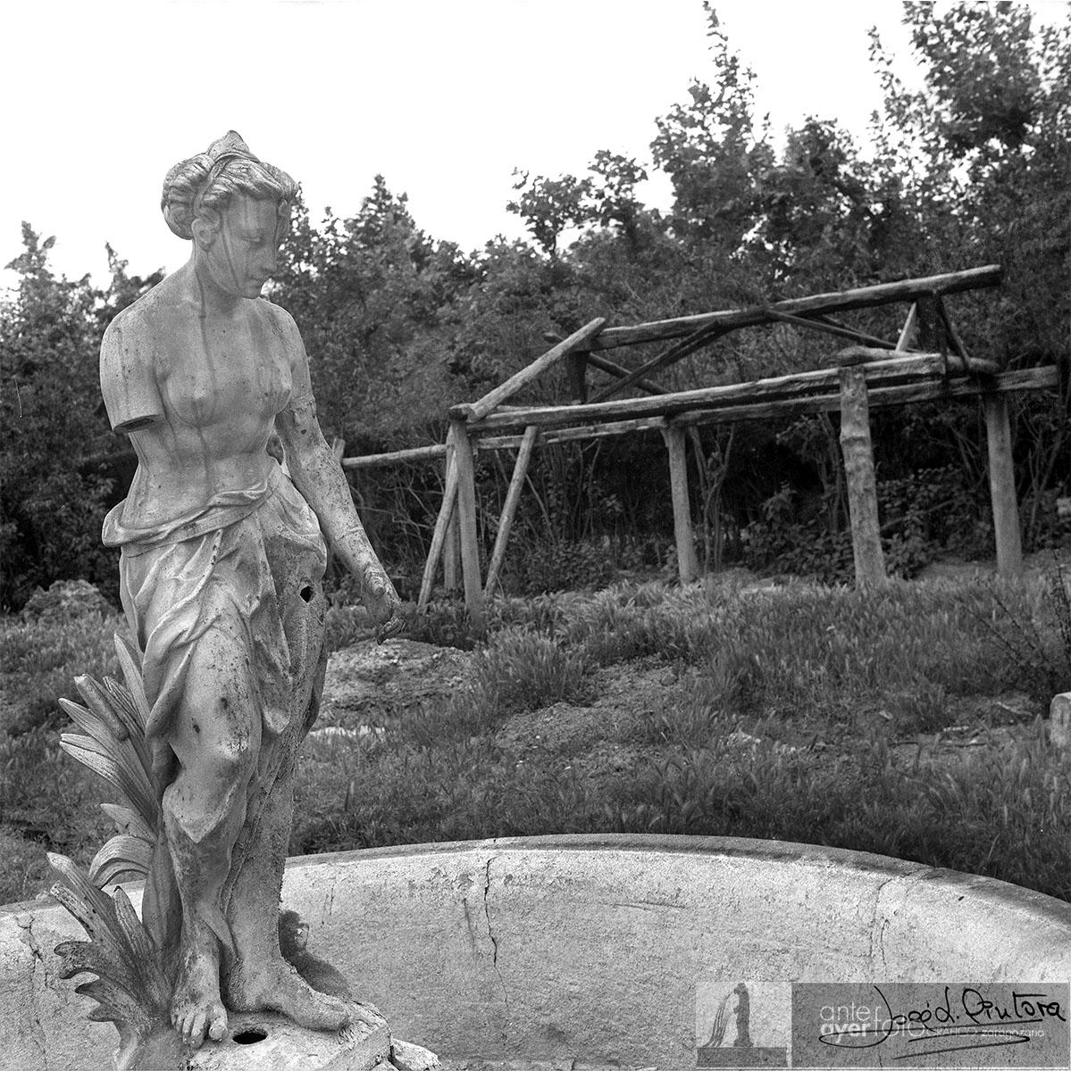 Fuente que posiblemente corresponda a la llamada “Aretusa”, colocada en el Coso frente a la Audiencia en 1862. Aquí la vemos en los viveros municipales en 1969, junto al actual Parque J.A. Labordeta.