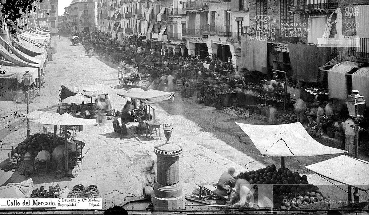 Calle del Mercado (fragmento). Tomada desde un edificio del bloque entre Cerdán y Escuelas Pías, muestra la fuente del Mercado.