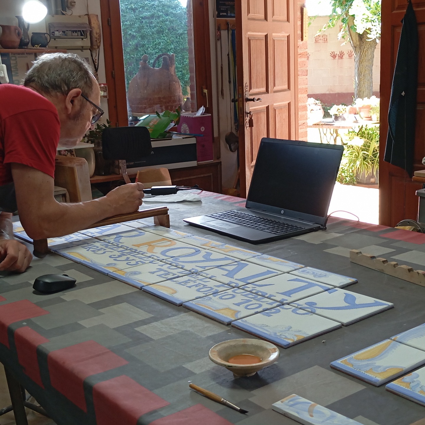 Pintor y fotógrafo, Ruiz de Luna había dedicado a principios de siglo una colección de postales a los alfares de Talavera de la Reina. Enamorado de la decadente industria estableció sociedad con Enrique Guijo, comandita que cesó con el traslado de Guijo a Madrid para dedicarse a la producción de murales publicitarios para el Metro. Resulta paradójico que la misma industrialización que había desplazado a las vajillas artesanales ofreciese a los alfares la alternativa de producir azulejerías que valiéndose de guirnaldas, bellas tipografías y voluptuosas damas, invitasen al paisano al consumo de antitusivos, licores anisados, conservas o acciones de las eléctricas. De ese modo, adaptándose a los tiempos Ruiz de Luna se convirtió en un referente de la cerámica nacional, firmando obras tan diversas como las bancadas de la Iberoamericana de Sevilla, las placas del callejero de Madrid o el rótulo de la Imprenta Blasco de Zaragoza.