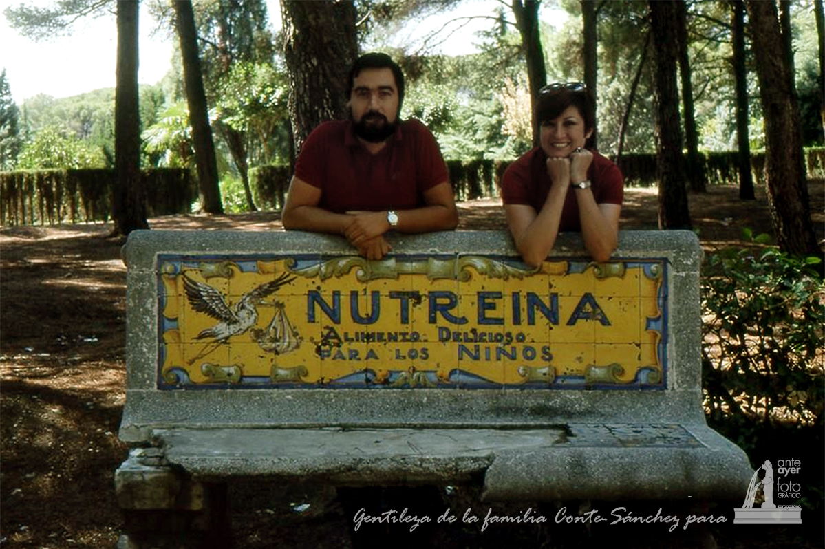 Aledaños del Jardín de Invierno. Banco con publicidad de Nutreina. 1975.