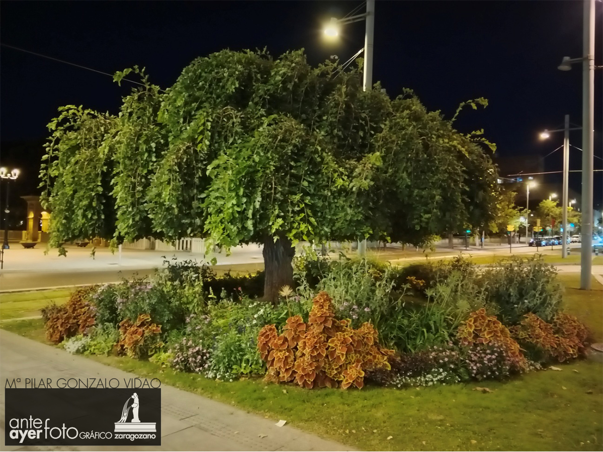 Ejemplar de Morus alba forma péndula obtenido de la Quinta de San José y trasplantado cuando tenía 3 años, en 1958. Se encuentra en la intersección de la calle Manuel Lasala, Isabel la Católica y la plaza del Emperador Carlos V, frente al Parque Grande-José Antonio Labordeta.