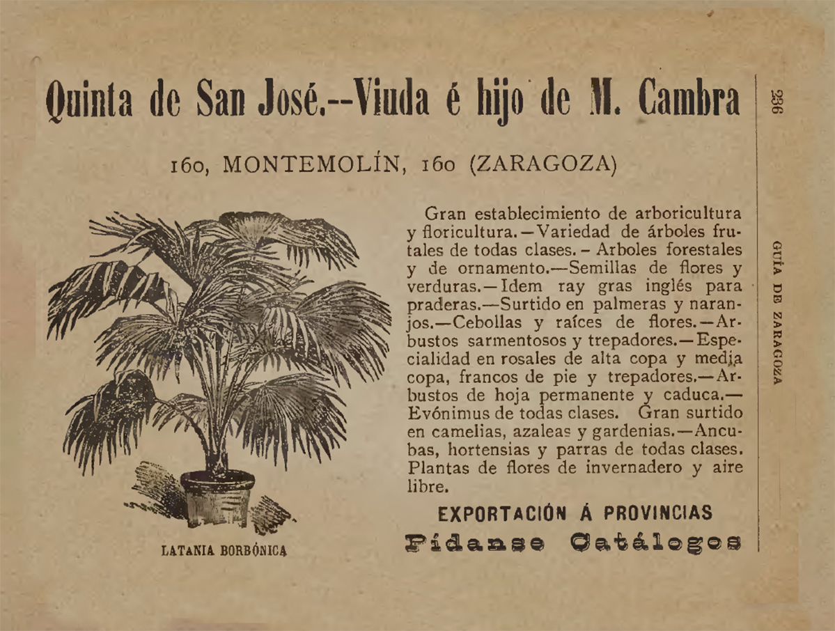 Quinta de San José. Viuda e hijo de M. Cambra. Guía de Zaragoza de 1898. AMZ