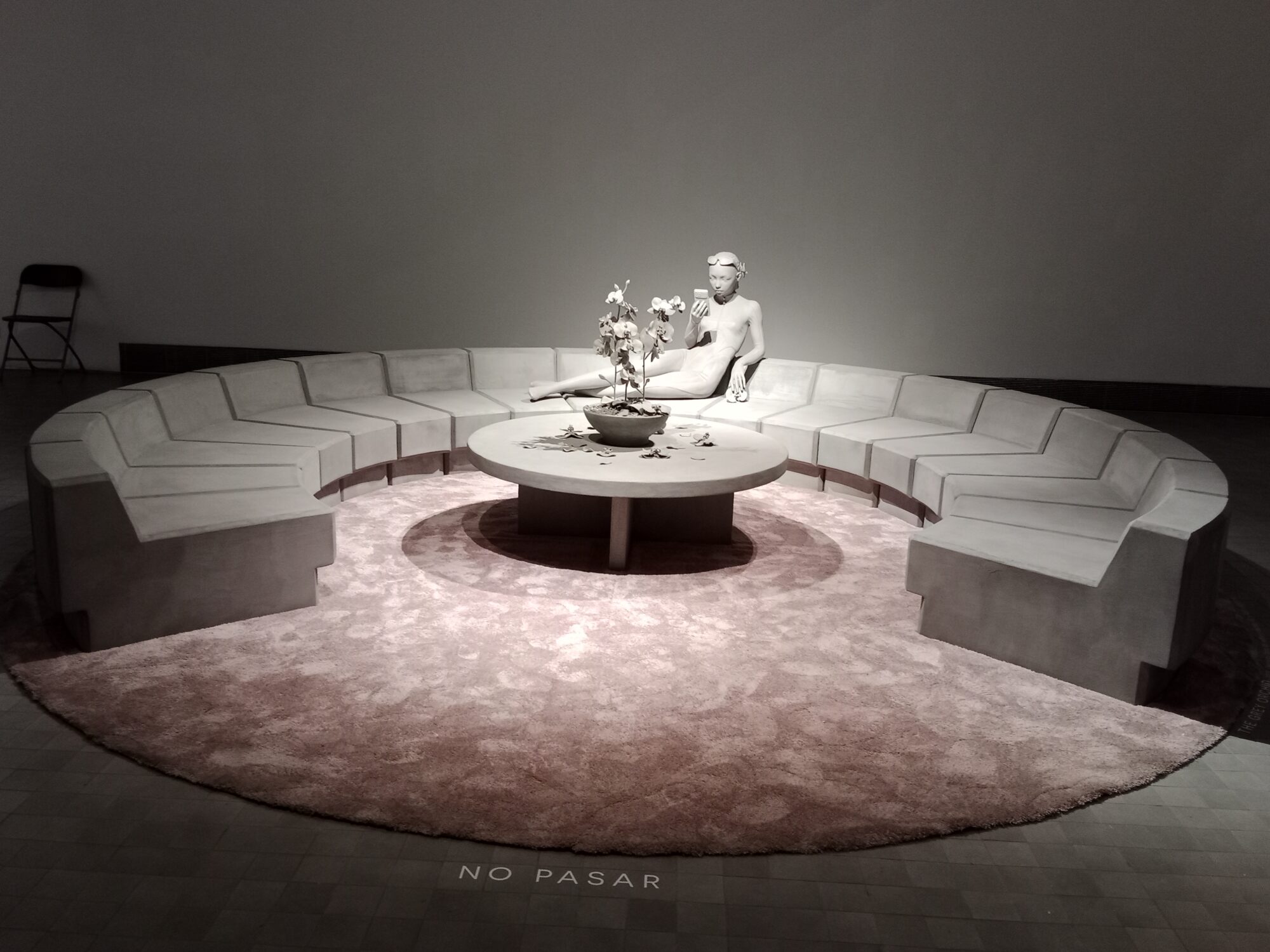 Adentrarse en el universo Synthetic Nature es interiorizar sensaciones humanizadas que están por venir pero que ya damos por ciertas, por asimiladas, por irrefutables. No es fácil de digerir un espacio de paredes vacías que concentran la atención en un número mínimo de obras, y sin embargo, la mimetización del color con estas no resta la atención constante que el espectador experimenta al traspasar la entrada a la sala. Un envoltorio de tensa calma nos lleva hasta cada propuesta. Un desasosiego palpita en nuestro interior recordándonos que hemos sido nosotros quienes hemos propiciado que el futuro que ya asoma, sea un muestrario de humanos biónicos como maniquíes con piezas metálicas integradas en sus cuerpos avanzando ante una condición semi muerta, silenciosa, sin apenas gestos ni muecas. Una visión de la humanidad en la que no cabe la vejez, la arruga ni la sonrisa, esa que nos hace socializar, confiar y pertenecer a un grupo.